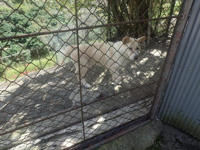現場近くのワンちゃんです。現場担当者を見つけるとワンワン吠えますが、 近くに寄ると吠えることなく懐いてくる可愛いワンちゃんです。 少し犬が苦手な (子供時代に野良犬集団に追い掛けられた) 私は吠えられるとビビッてます(笑)